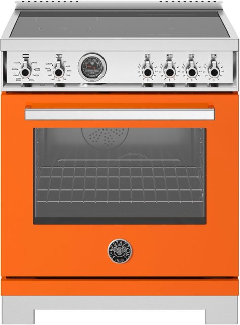 Loading... Please wait...This 30” Induction range has 4 high-power heating zones with maximum power output of 3700W, Bridge Element, 4.6 cubic feet self-cleaning oven, dual convection fan, 7 shelf levels, digital gauge, temperature probe, telescopic glides, soft-close doors, air-frying mode. All Bertazzoni appliances are covered by a 2-year warranty.