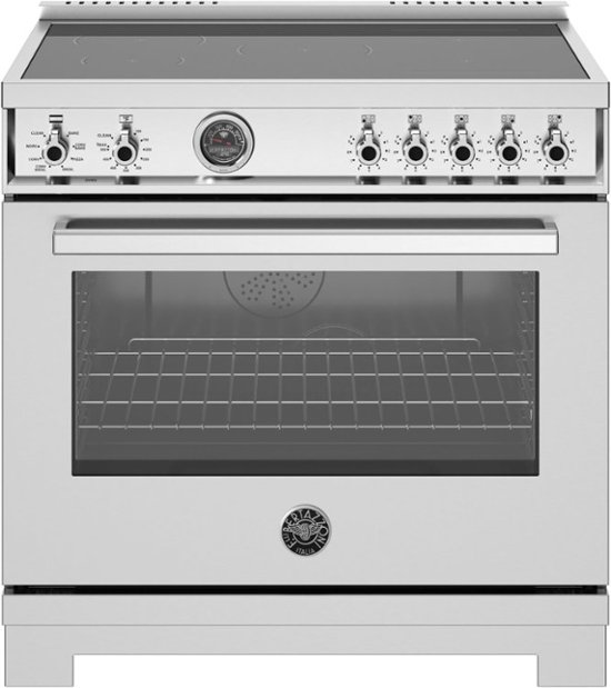 This 36” Induction range has 5 high-power heating zones with maximum power output of 3700W, Bridge Element, 5.7 cubic feet self-cleaning oven, dual convection fan, 7 shelf levels, digital gauge, temperature probe, telescopic glides, soft-close doors, air-frying mode, removable cast-iron griddle is included. All Bertazzoni appliances are covered by a 2-year warranty.