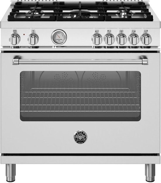 New Products36” Dual Fuel range with 5 burners features a dual ring 19,000 BTU power-burner and simmer at 750 BTUs, 5.9 cubic feet oven, dual convection fan, 7 shelf levels, temperature gauge, extra wide electric broiler, soft-motion door. An optional Collezione Metalli décor sets knobs and handles are available in contrasting metals - satin gold and black nickel - for aesthetic customization. All Bertazzoni appliances are covered by a 2-year warranty.