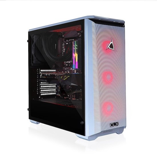 Lead your army to victory with this sleek black mid-tower CLX SET gaming desktop PC with great airflow and a liquid-cooled 4th Gen AMD Ryzen 7 5800X 3.8GHz 8-Core processor featuring new "Zen 3" architecture with relentless focus on single-core performance for higher instructions per clock as well as lower latency for ultimate gaming performance, plus this gaming system features 32GB of 3200MHz RAM providing high-performance even while multi-tasking, while the included 30 Series NVIDIA RTX 3080 10GB graphics cards delivers the horsepower of real-time ray tracing for immersive visuals. Also included are a 3TB Hard Drive and 480GB SSD for plenty of space-demanding games. This CLX SET gaming PC will get you to victory!