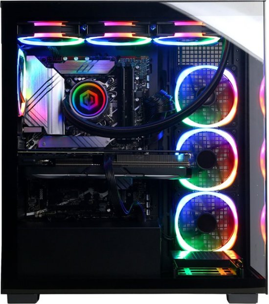 Loading... Please wait...Enjoy riveting gameplay with this CyberPowerPC Gamer Supreme Liquid Cool gaming desktop computer. The 2TB NVMe SSD provides ample storage space and delivers rapid start-ups, while the 13th Gen Intel Core i9 processor and 64GB of RAM offer swift performance. This CyberPowerPC Gamer Supreme Liquid Cool gaming desktop computer features an NVIDIA GeForce RTX 4070 Ti graphics card for immersive, stutter-free gameplay.