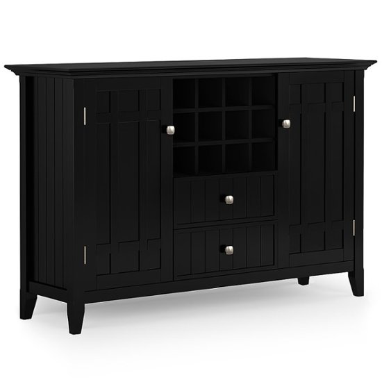 New ProductsThe Bedford Sideboard Buffet and Wine Rack, made from solid wood, has plenty of storage and space for all your dining and entertaining needs. It has a large centrally located wine storage area with two drawers. The two large side storage cabinets open to two adjustable shelves.