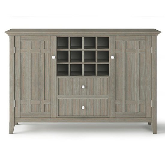 The Bedford Sideboard Buffet and Wine Rack, made from solid wood, has plenty of storage and space for all your dining and entertaining needs. It has a large centrally located wine storage area with two drawers. The two large side storage cabinets open to two adjustable shelves.