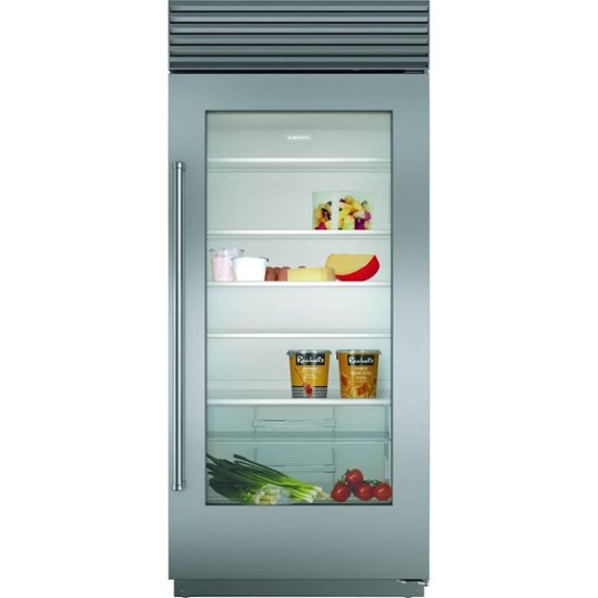 Reduce the risk of food loss with this 36-inch Sub-Zero refrigerator. The UV-resistant glass door and LEDs provide a clear view of the interior, while adjustable shelves support flexible storage. Featuring high-humidity crisper and deli drawers, this Sub-Zero refrigerator extends the shelf-life of fresh produce, and the sturdy construction offers long-lasting use.